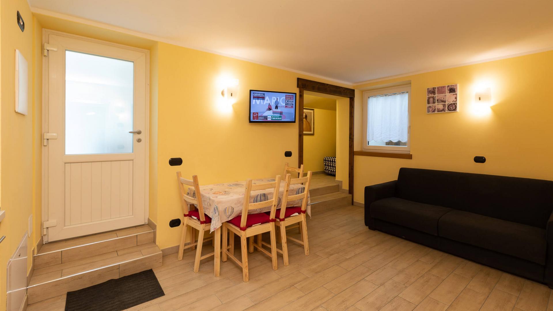 L’appartamento Gloria è un bilocale attrezzato ideale per ospitare una famiglia con 2-3 bambini o un gruppo ristretto di amici. È composto da ampio e luminoso soggiorno con divano-letto e angolo cucina dotato di tutti i servizi, camera con letto matrimoniale, bagno con antibagno e doccia.