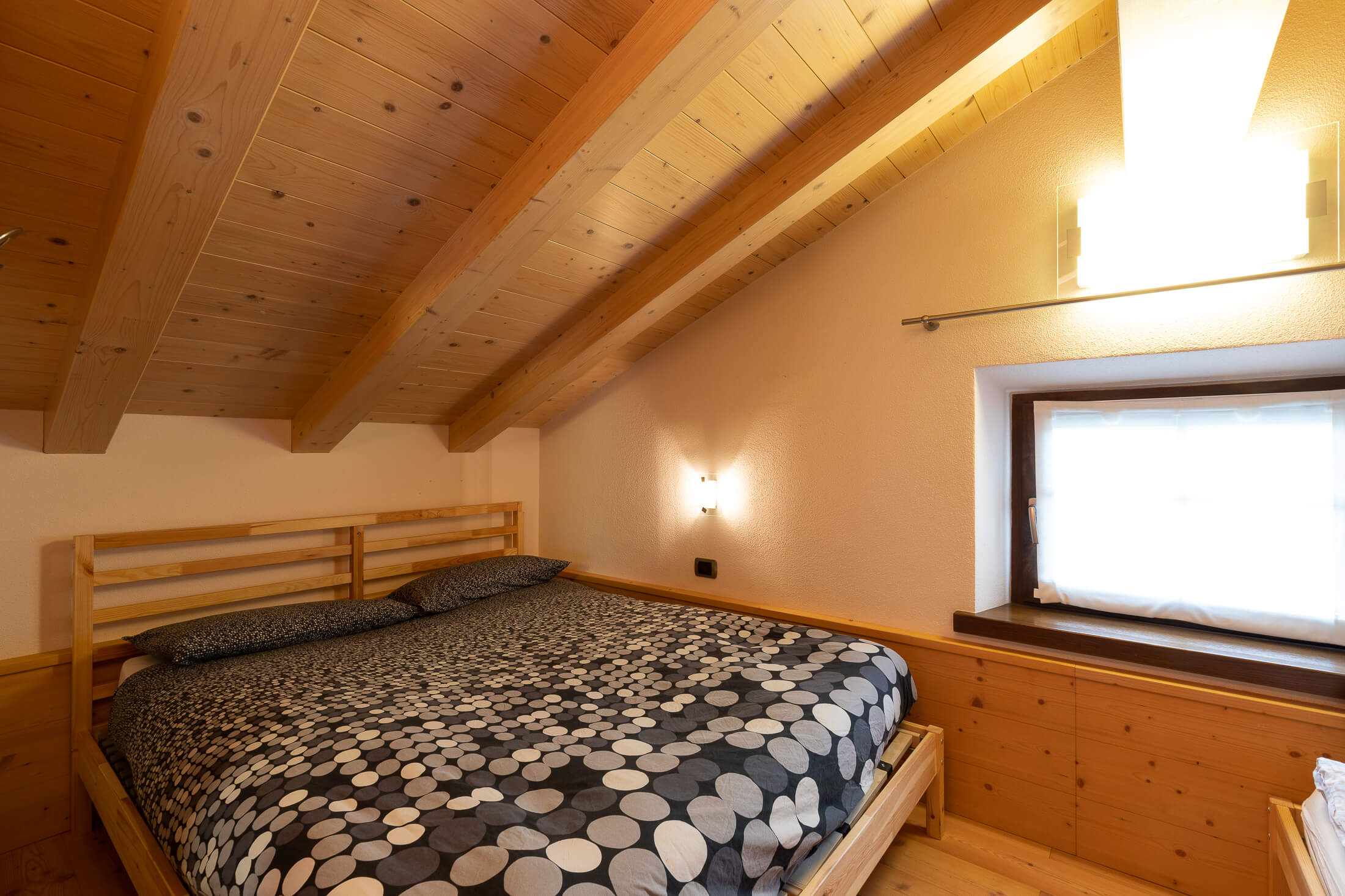 Larger families and groups of friends can stay at Pianeta Oro in Livigno in this spacious apartment on two floors: on the lower floor, there is a bright living room with TV, sofa, sofa-bed and fully-equipped kitchenette, plus a bathroom with shower; while on the upper floor with sloped roof, reached by an accessible internal stairwell, there is a double bedroom with TV, a further double bedroom, a single bedroom with TV and a bathroom with shower.